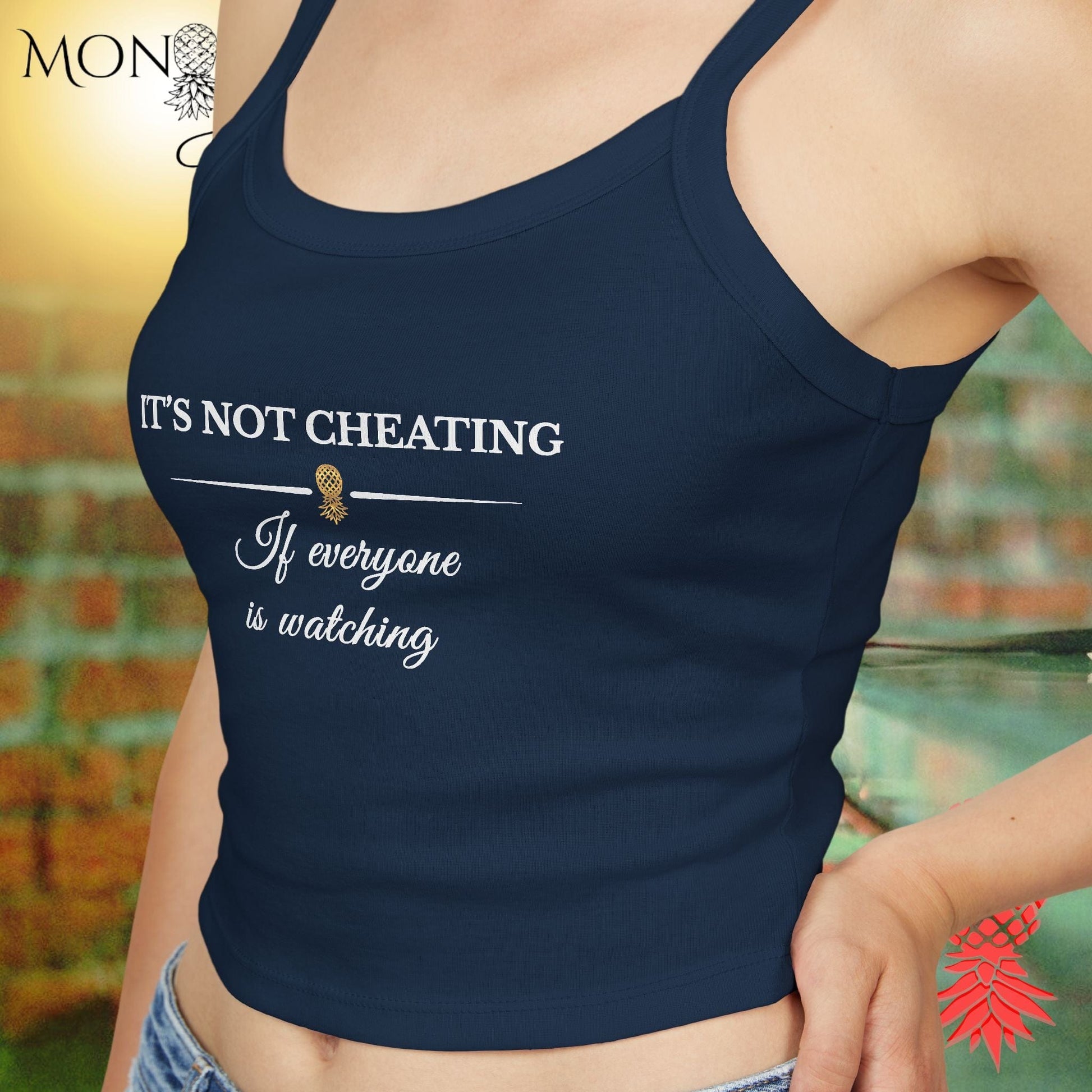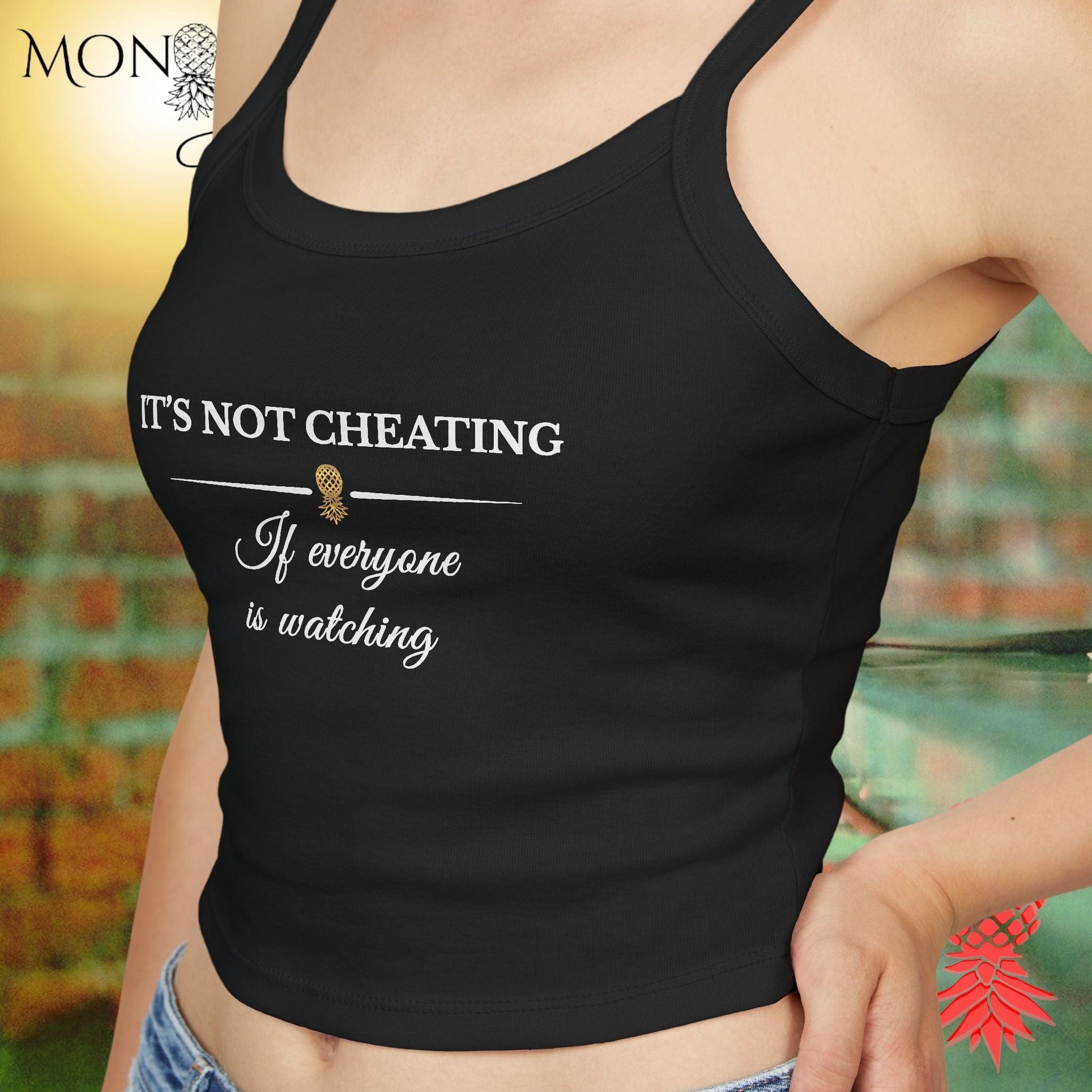 This tee takes playful provocation to the next level with the phrase “It’s Not Cheating If Everyone is Watching,” served up in a stylish blend of serif and script. A subtle upside-down pineapple anchors the design between the lines, signaling your lifestyle mindset with class and confidence. Perfect for group-friendly events, same-room vibes, or parties where exhibitionism is part of the fun, it’s bold without being crude—and irresistibly suggestive to those in the know.