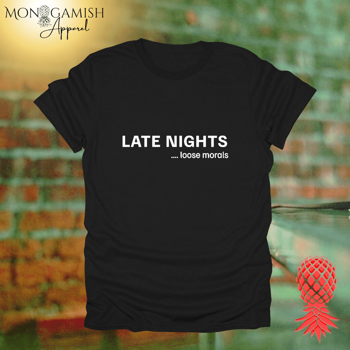 Embrace the wild side with our “Late Nights... Loose Morals” unisex tee. Perfect for those who live for unforgettable nights and hilarious stories the morning after. This bold statement piece keeps it effortlessly stylish while the playful phrase brings humor and intrigue. Whether you're out with friends or just living life to the fullest, this tee is for those who know how to have fun... no apologies needed.