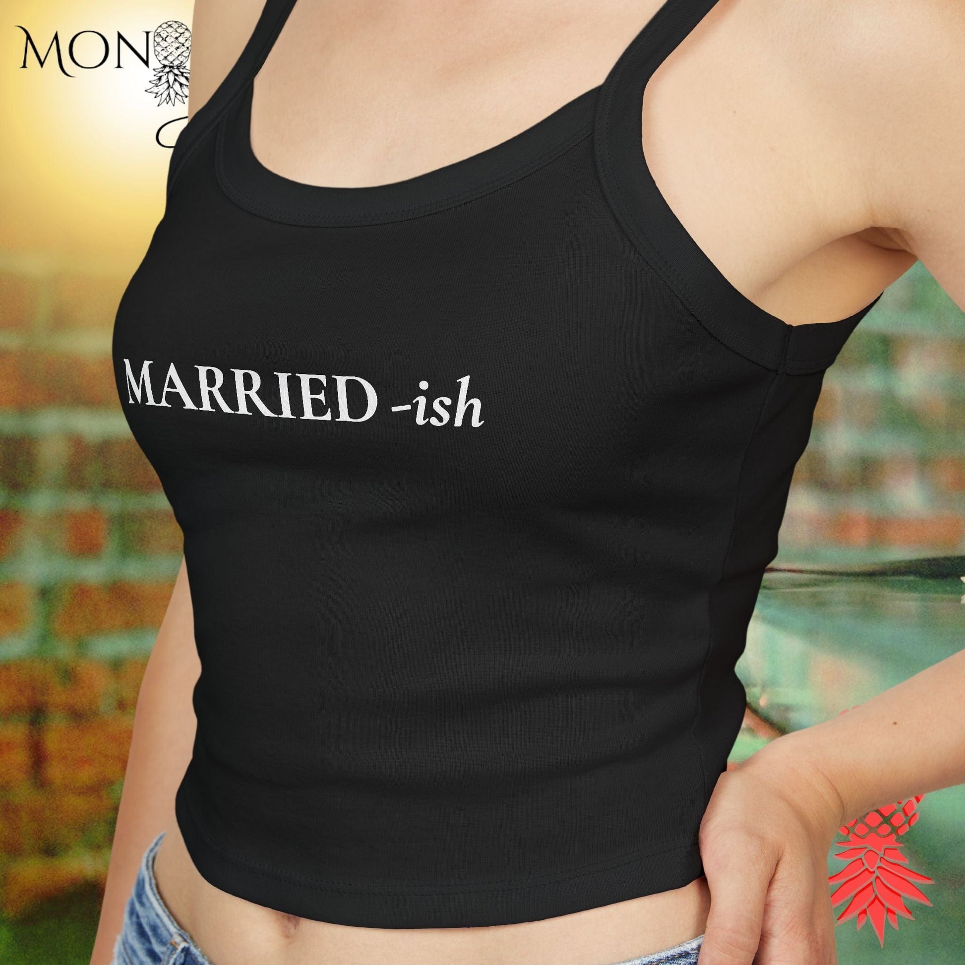 For those who put the "ish" in relationship status. Our "Married-ish" crop tank is a cheeky nod to the lifestyle where love and freedom play nice. Perfect for lifestyle events, casual flirts, or just owning your truth at brunch. Bold serif meets playful script for a design that’s subtly rebellious, yet totally wearable. Made for the wild-at-heart and the rule rewriters. Pairs perfectly with a wink and a glass of wine.