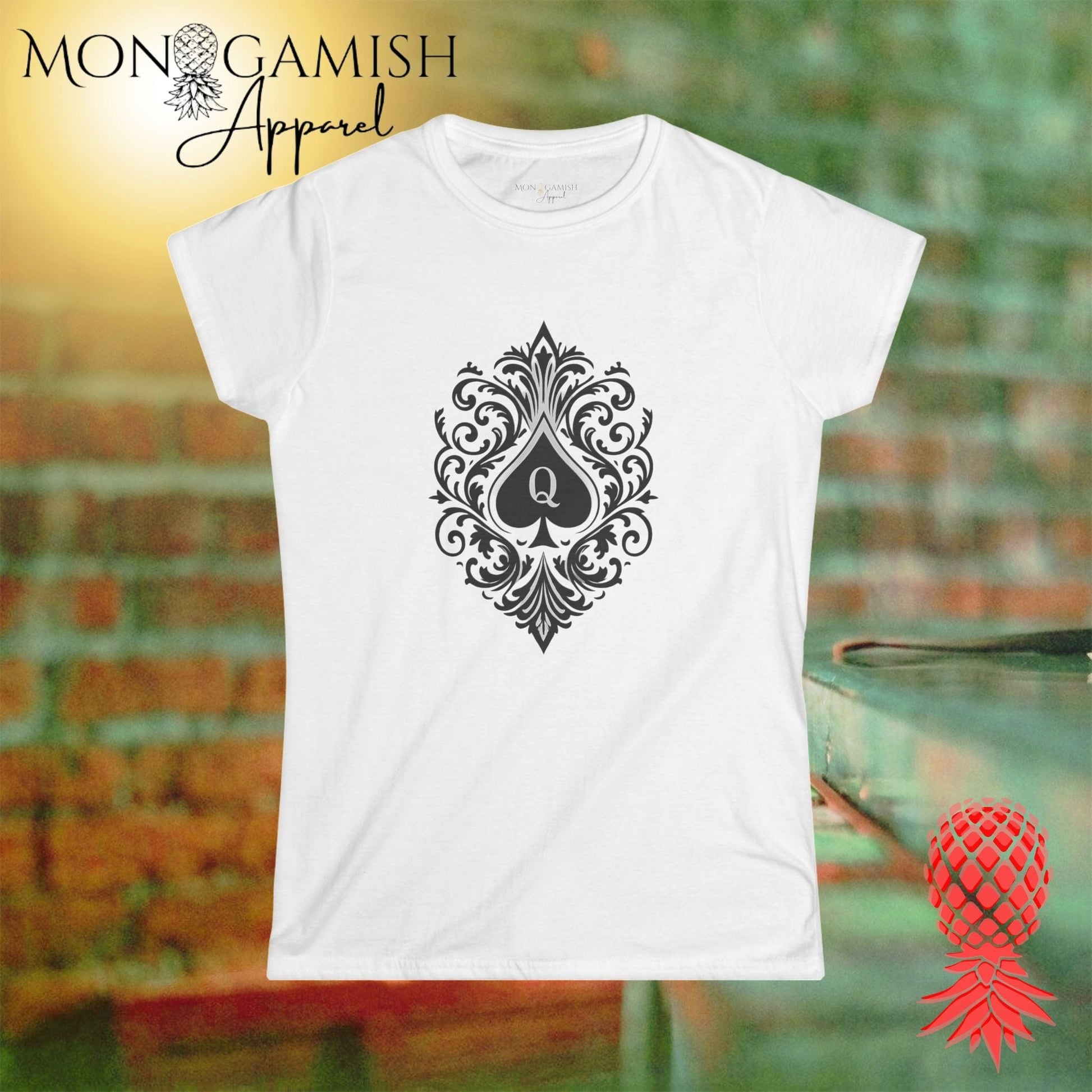 This elegant yet unmistakably bold design puts a sultry twist on the classic Queen of Spades symbol. With ornate flourishes surrounding a centered “Q” inside a spade, it’s the perfect blend of sophistication and signal. Whether you’re proudly flying your flag or simply feeling powerful and desired, this shirt speaks volumes without saying a word. Designed for women who own their confidence and their choices—because being the Queen means you set the rules.