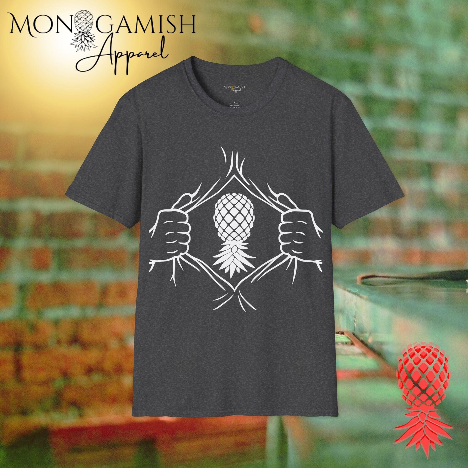 This unisex tee makes a bold statement with a graphic of hands pulling open the fabric to reveal an upside-down pineapple at the center. It’s the perfect mix of playful and daring, symbolizing the lifestyle signal just beneath the surface. Ideal for house parties, takeovers, or casual outings, this design shows that what’s underneath is always more interesting than what’s on top.