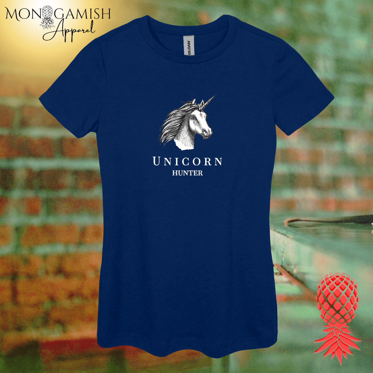 Embrace the thrill of the chase with our “Unicorn Hunter” ladies tee. Designed for those in the know, this playful yet stylish design features an elegant sketch of a unicorn paired with sophisticated typography. Perfect for women who confidently navigate the lifestyle with curiosity and boldness. Whether at a social gathering or a night out, let this shirt spark intrigue and conversation.